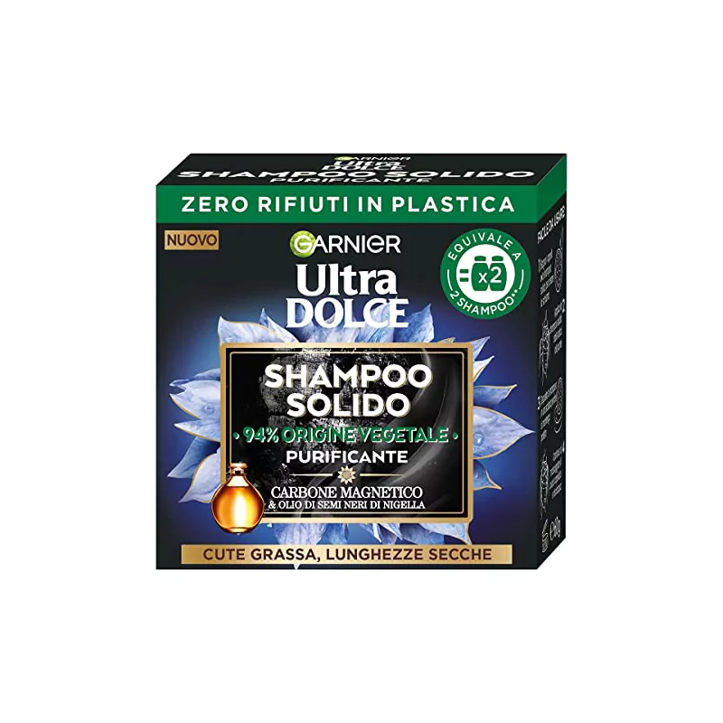Scopri la nuova linea Garnier Ultra Dolce con Carbone Purificante ed Olio di semi neri di Nigella Idratante. La nuova linea senza siliconi è la prima di Ultra Dolce con formula al 94% di origine naturale per rimuovere il sebo in eccesso dal cuoio capelluto e offrire idratazione alle lunghezze fino a 72 ore*. Efficace senza compromessi, Ultra Dolce Carbone Magnetico purifica la cute ed idrata le lunghezze. Senza siliconi, coloranti artificiali ed ingredienti o derivati di origine animale.